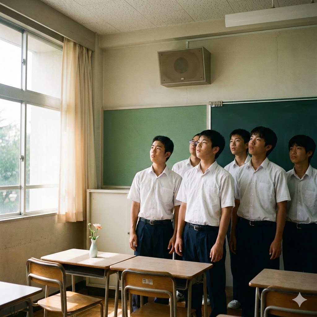 夏休み明け、教室のスピーカーから突然「俺、死んだわ」という声が響きます。
